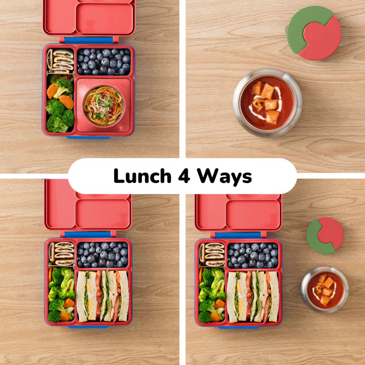 The OmieBox is a thermal lunchbox that effectively stores both hot and cold food in separate temperature zones. Its thermos keeps food warm, while the remaining compartments maintain cool temperatures.